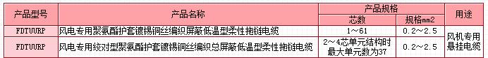 額定電壓300/500V及以下風(fēng)電專(zhuān)用低溫型柔性拖鏈電纜