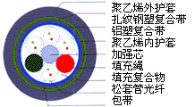 產(chǎn)品型號: GYSTA53也叫(GYTA53) 光纖松套管 金屬中芯加強件 纜芯填充油膏 雙涂料鋁帶粘結(jié)PE內(nèi)護(hù)套 軋紋鋼帶粘結(jié)PE外護(hù)套 | |||
